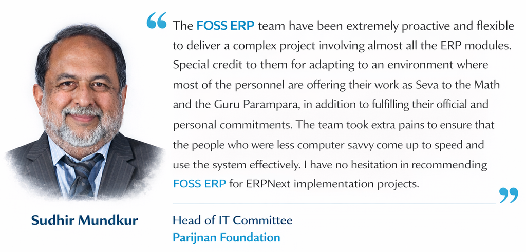 To streamline operations and scale efficiently, Parijnan Foundation implemented ERPNext, creating a single integrated platform to manage its diverse activities.